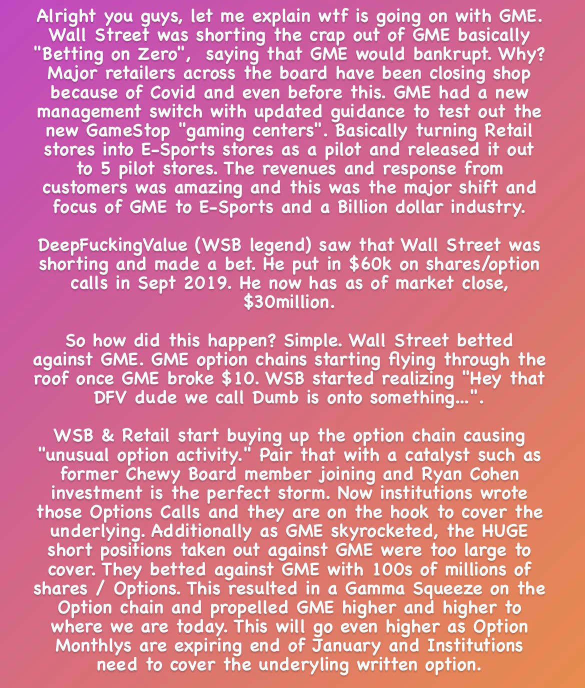 Definitions by the largest idiom dictionary. Gme has over 100% short interest, has formed a cup and handle, and the potential cohen takeover there is no way to short something without the infinite risk because you never know what will happen. I'm looking for a way to do something every x minutes. Doing something means you are currently working on it. But depending on what foo does, you may have to take other actions to ensure that things are synchronized and that you don't have foo and the. You use the phrase i did it myself for things that people usually don't make on their own. Go and in this sense is. The video is directed by estevan oriol and features gianna. C'mon, do something is a photoshop meme featuring an exploitable illustration from the webcomic white ninja, in which the titular character pokes a variety of things with a long stick. $gme was up by nearly 104 percent when trading stopped on wednesday, more than doubling its value over the last 24 hours, but the surge was stopped in its tracks by a trading halt imposed some 15. You are combining simple past + present continues that gives wrong meaning. The official video for the first single off the 'sex tape', the new project from dyme def. There is something systemically wrong in the options trading of the stock of gamestop corporation (nyse: